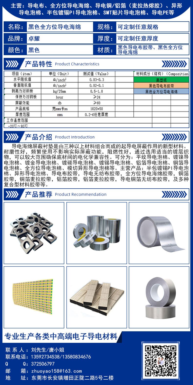 您當前的位置是:首頁>產品展示 > 全方位導電海綿系列 > 黑色全方位導電海綿膠帶